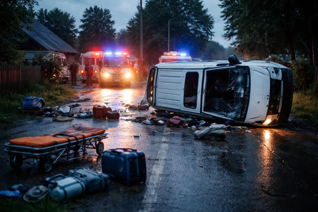 Microbuz răsturnat în Liviu Rebreanu: 6 victime, dintre care 5 femei, transportate la UPU SMURD Bistrița